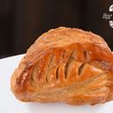 For reference only: Flaky pastry turnover filled with seasoned chicken.