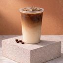 Rich iced chocolate milk over ice, finished with a light dusting of cocoa powder.