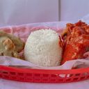 2 Pcs wings (1 whole wing cut into two), rice, mojos & garlic dip
