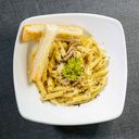 The Stroganoff, the most tender, melt in your mouth beef strips ever, mushroom slices, savory cream sauce over al dente linguini. Comes with strips of toasted bread and lemon wedges.