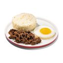 A delicious combination of garlic rice, fried egg, and tender beef tapa.