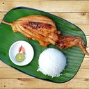 For reference: A half portion of bangus (milkfish) served with two cups of rice.