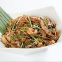 Thai noodles sauteed in egg, fish cake, tofu, chaypo, bean sprout, cabbage, carrots & chives with thai chili sauce topped with egg floss.