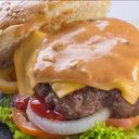 Single beef Patty, caramelized onions, lettuce, cheddar cheese, house sauce and cheese sauce