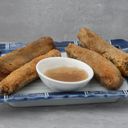Deep fried pork spring rolls served with sweet and sour sauce