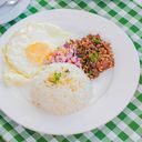 Good for 2 to 3 pax. Our special sisig made from vigan longganisa with loads of garlic & spices garnished with onions, chili & egg on top