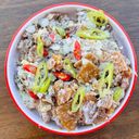 Delight in savory rice noodles smothered in a rich garlic shrimp sauce, topped with crispy chicharon, chicharong bulaklak, crispy Bagnet, hard-boiled eggs, and fresh green onions. Served with a side of tangy calamansi.