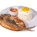 Milkfish marinated in vinegar, garlic, onions, salt and pepper, pan-fried to perfection, served with garlic or plain rice and mango salsa