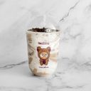 For reference only: Indulgent milk tea with the perfect blend of dark chocolate and crunchy cookies.