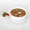 For reference: Savory noodle dish with rich broth, vegetables, and tender meat, served in a traditional bowl.