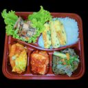 include rice and eggroll with cook beef meats, choice of three (3) side dishes: Japchae, kimchi, tteokbokki, potato marbles, fish cake, ssamjang & lettuce