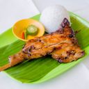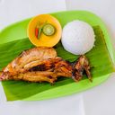 Juicy, tasty chicken inasal with extra rice. Contented.