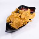 For reference: Crispy fried chicken skin, often served as a savory snack or appetizer.