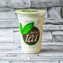 For reference only: Sip on the soothing blend of premium green tea leaves and velvety milk in every sip of this latte!