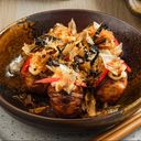 Crispy, fluffy Octopus balls , topped with special sauce, Japanese mayo, and bonito flakes.