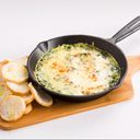 For reference: A creamy and cheesy spinach dip, served warm and perfect for pairing with crispy bread or chips.