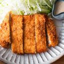 Deep fried pork cutlet with tonkatsu sauce.