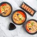 1 Spicy Miso Ramen, 1 Curry Ramen, 1 Shoyu Ramen, and 6 pcs. Gyoza