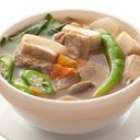 A steaming sour broth with pork and lots of vegetables for a tasty & healthy meal