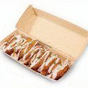 Boneless chicken thigh cut into strips and coated with our special spice mix then fried to crispy perfection. Choose up to two flavors. Product in image is ½-pound Hot Chix Strips.