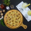 Pineapple, Mushroom, Bell pepper, Onion and Cheese on a thick crust