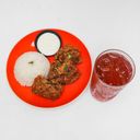 Bibimbap style bowl with boneless chicken bites, spicy sauce & house blended iced tea