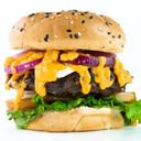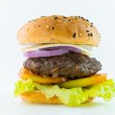 For reference: Juicy beef patty topped with fresh ingredients, served on a toasted bun.