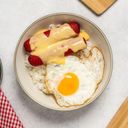 Longganisa and egg over your choice of rice, served with spiced vinegar on the side.