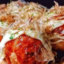 Japanese takoyaki balls filled with octopus bits filings & real Japanese ingredients on top.