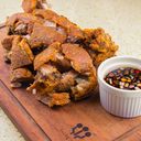 Slow cooked in hickory wood smoke, sweet tart glazed & dipping sauce