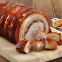 A Filipino dish of roasted pork belly marinated in vinegar and spices.