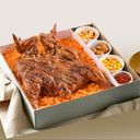 Whole BBQ Peanut Chicken: 1 whole slab pork bbq ribs , 6 regular sides, 6 java rice, 1l drink (choice of house blend iced tea or lime-ade)