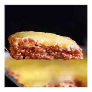 For reference: Layered pasta dish with cheese, sauce, and savory fillings, baked to perfection.