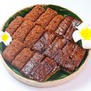 For reference only: Box filled with portions of Filipino sticky rice cake (biko), perfect for a gathering (salu-salo).
