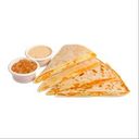 Folded tortilla filled with cheese, toasted and served with salsa.