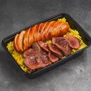 Flat Iron Steak + Cheesy Hungarian Sausage + Steak Rice