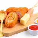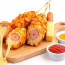 The middle part of the corndog is not fully cooked, so there’s still some dough in the middle between the hotdog and cheese