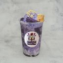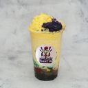 Ube or vanilla ice cream, rice crispies, ube halaya, lecheflan on top and milky frozen iced ube flavor and ube on bottom