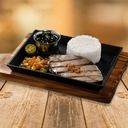 1pc chicken steak, 1pc egg, 1pc sausage, 1 cup rice, 1 drink
