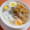 For reference: Savory noodle soup with rich broth, topped with eggs, scallions, and crispy garlic.