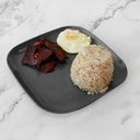For reference: A hearty Filipino breakfast with garlic rice, eggs, and a flavorful meat option.