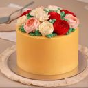 An 8-inch cake made with fluffy layers of vanilla chiffon, creamy caramel icing & topped with edible buttercream flowers
