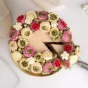 An 8-inch old fashioned chocolate cake with coffee filling, coated with a decadent chocolate ganache & topped with edible buttercream flowers