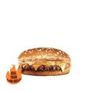 100% flame-grilled beef patty with american cheese, swiss cheese, mozzarella cheese, and cheese sauce on a fluffy glazed sesame seed bun.