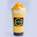 Mango shake with Black Pearl topped with Mango chunks and icecream