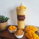Mango shake with crushed grahams, mango chunks, whipped cream and ice cream