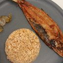 A half portion of marinated, fried milkfish, paired with rice & dipping sauce