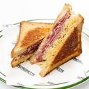 Homemade beef pastrami, sauerkraut & emmental with special sauce on griddle toasted rye