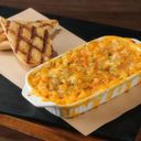Elbow macaroni, creamy cheese sauce, mozzarella cheese, served with buttered baguette bread