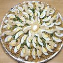 For reference: Noodles served with creamy sauce, cheese, and a mix of savory ingredients in a platter.